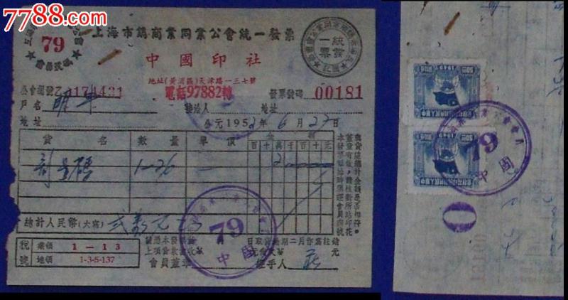 民国36年中华印社 民国36年中华印社发票 正贴联运图税票